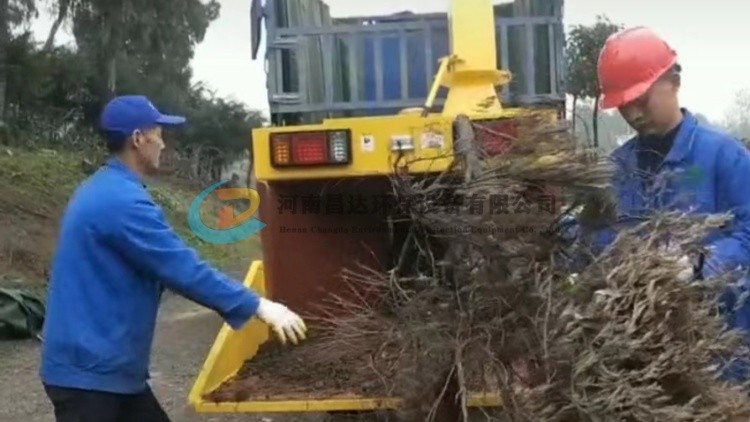 6145型树枝粉碎机江苏客户使用现场,树枝树杈清理清运不再愁,树枝粉碎后直接喷人车厢,树枝树杈回收在利用,可以制作有机肥,生物质燃料颗粒,香菇种植等。